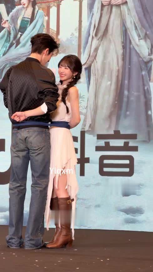 可接下来的互动,就越来越离谱了。先是主持人提议让两人还原剧中的名场面,两人直接贴身站在一起。